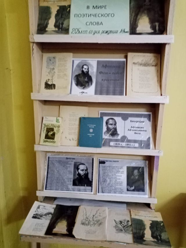 Новости Устиновской сельской библиотеки-филиала Книжная выставка «Поэзия сердца»: к 205-летию со дня рождения А.А. Фета Новости: 2025 Подробнее о Новости Устиновской сельской библиотеки-филиалаВойдите, чтобы оставлять комментарии