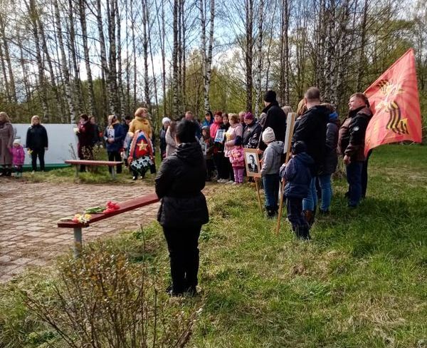 Вначале состоялось традиционное шествие «Бессмертного полка» в д. Зеленцово. Внуки и правнуки несли фото своих родных и близких с флагами, шарами, цветами.