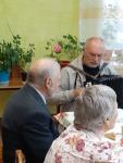 Активисты нашей библиотеки – Вячеслав Николаевич Гаркуша и Сергей Анатольевич Гребенщиков подготовили музыкальную программу, которая затронула каждого пришедшего на встречу. Звучали песни молодости наших читателей. Все хором подпевали.