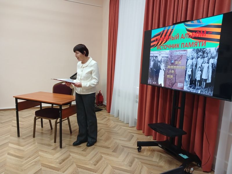 Читательница Булатовской сельской библиотеки-филиала, преподаватель Ирина Александровна Головкина отметила важность создания и хранения семейных альбомов. Используя старые фотографии можно воссоздать целые пласты семейной истории. Они рассказывают нам о жизни предков. Перелистывая страницы старого семейного альбома, мы вспоминаем своих близких, погружаемся в иное время. (презентация)