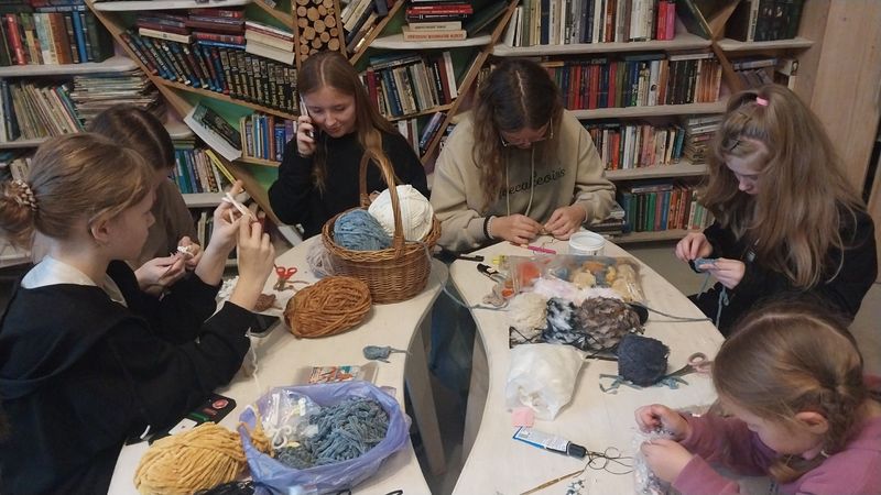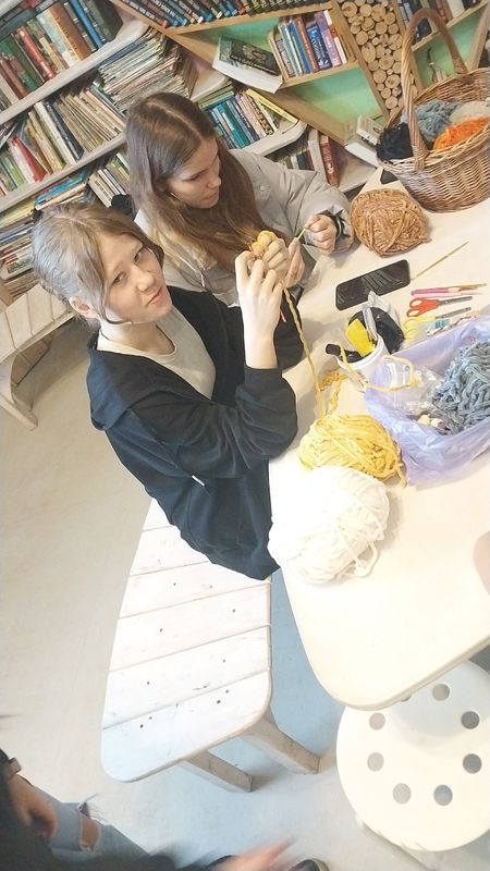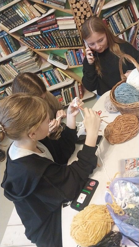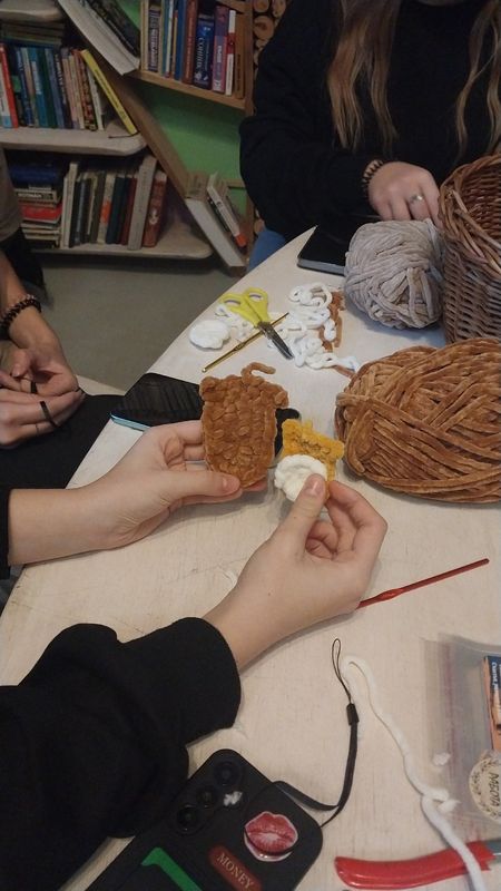 Для тех участников, которые владеют крючком, была предоставлена плюшевая и меховая пряжа разных оттенков и крючки – свои шедевры они создавали полностью сами.