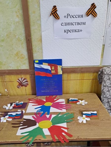 В Уницкой сельской библиотеке филиале прошёл тематический час «Россия единством крепка», приуроченный ко Дню единства. Библиотекарь Мамаева Н.М. рассказала детям об истории праздника, значении флага, герба и гимна - официальных символов Российской Федерации. Затем ребята ответили на вопросы викторины и приняли участие в мастер-классе.
