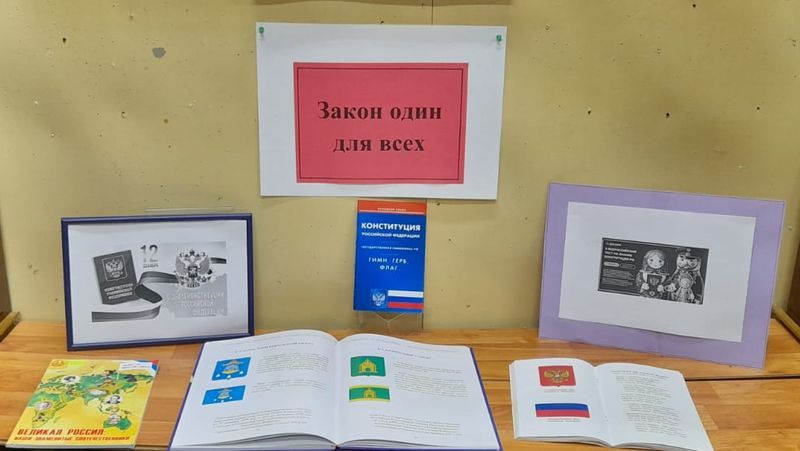 В библиотеке оформлена выставка по данной теме «Закон один для всех».